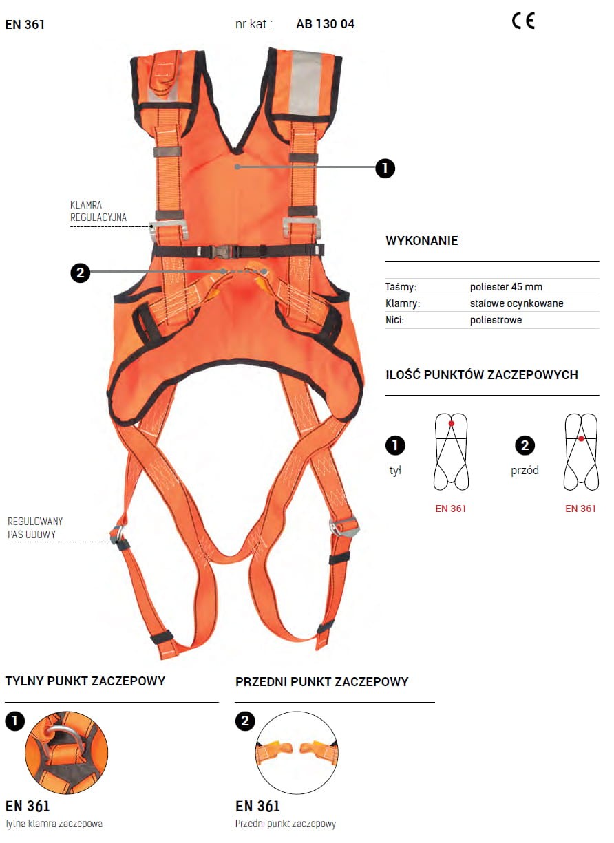 - pełna zgodność z certyfikatem PN-EN 361:2002 oraz dyrektywą 89/686/EWG/