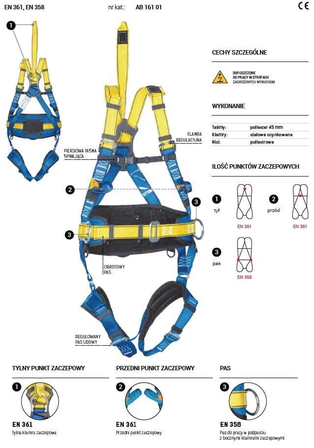 - pełna zgodność z certyfikatem PN-EN 361:2005; PN-EN 358:2002 oraz dyrektywą 89/686/EWG/