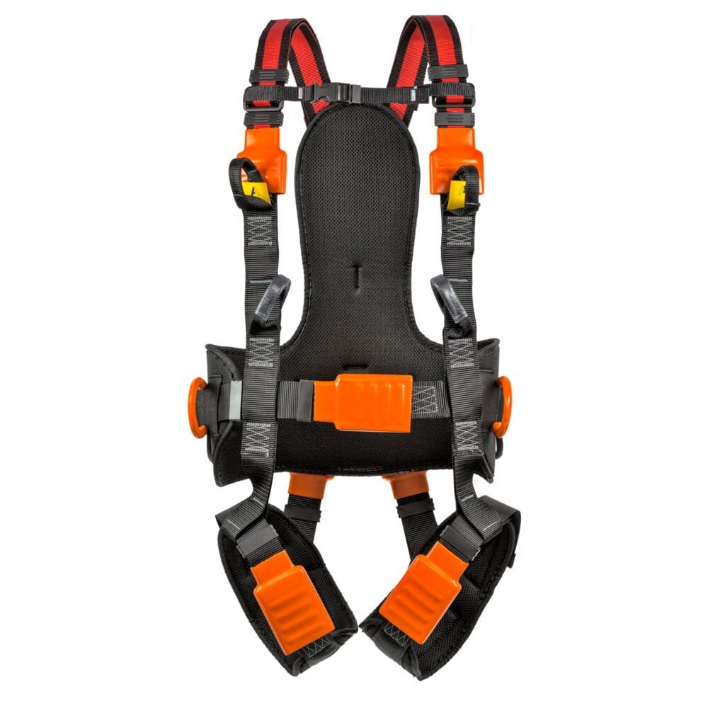 - udoskonalone klamry regulacyjno-spinające wykonane zostały z ocynkowanej stali wysokowęglowej oraz tworzywa ABS, umożliwiają łatwe i szybkie zakładanie szelek oraz pozwalają na dopasowanie długości wszystkich pasów do sylwetki ciała użytkownika