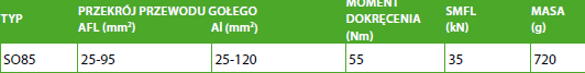 Uchwyt odciągowy AL 25-120, AFL 25-95 Ensto SO 85 krańcowy aluminiowy Stosowany jest do mocowania przewodów gołych napowietrznych linii nN i SN. Nadaje się do mocowania zarówno przewodów typu AFL jak i Al. Wykonany z odpornego na korozję stopu aluminium.