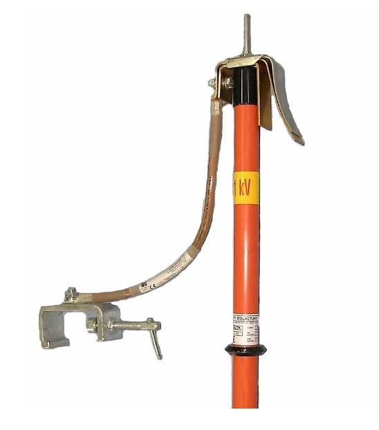- składa się z zacisku fazowego zamocowanego trwale na uchwycie izolacyjnym UIUTK-B wykonanym z rury izolacyjnej RSE w kolorze pomarańczowym wypełnionej pianką izolacyjną, wyposażonego w mosiężny styk zapewniający szybkie i trwałe mocowanie na przewodzie jezdnym, zacisku uziomowego WR-5 wykonanego z płaskownika stalowego zabezpieczonego galwanicznie, który jest przystosowany do mocowania za pomocą pokrętła z przetyczką do główki szyn typu: S30, S37 i S42 oraz S49 oraz przewodu uziemiającego wykonanego z linki miedzianej o przekroju 50mm² i długości 0,75mm