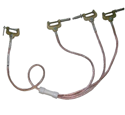 - posiada przewody zwierające fazy o długościach 0,7m o przekroju 50mm², zakończone zaciskiem WR-8/A, przewód uziemiający o długości 1m, wykonany z linki miedzianej o przekroju 50mm² w osłonie z PCV, zakończony zaciskiem WR-8 oraz złącze środkowe izolowane