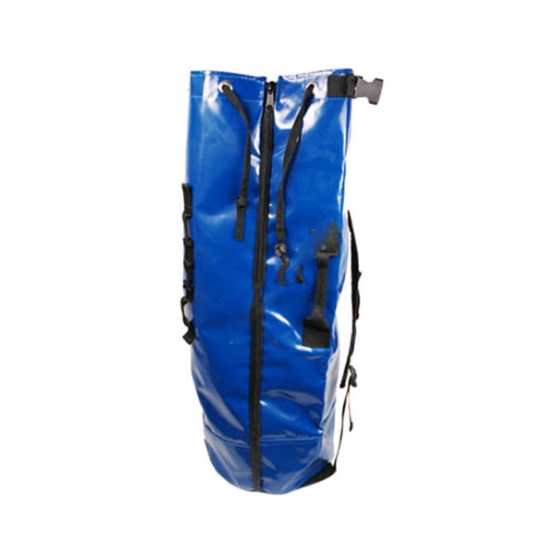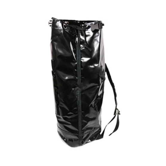 Wykonany z tkaniny PCW, odporny na uszkodzenia worek przeznaczony do transportu sprzętu.