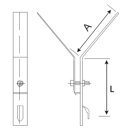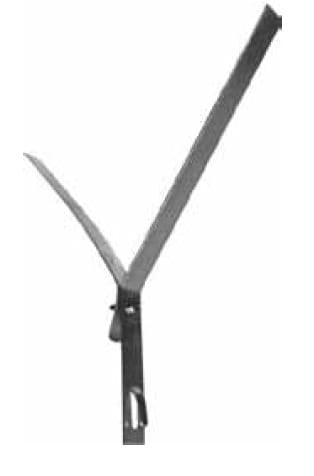 Wykonany z blachy o grubości 2mm. Drut mocowany poprzez zagięcie języka uchwytu. Końcówki obejmy proste. Całość ocynkowana ogniowo. Przeznaczony do nietypowych gąsiorów. L=120mm A=290mm/330mm