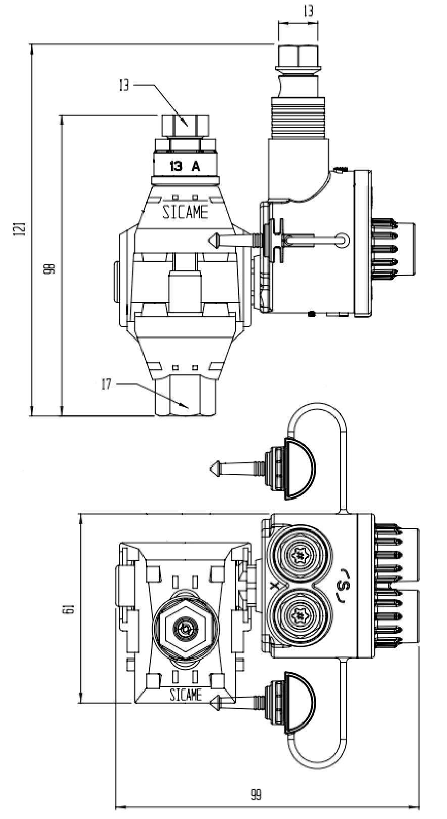 Zacisk TT2D 87 F3A (50-150 / 2x6-35) satelitarny obustronnie przebijający izolację - SICAME