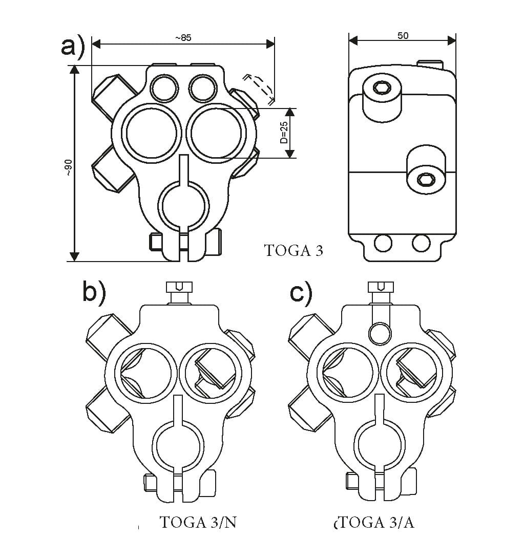 Zacisk transformatorowy TOGA 3 N (M12, M16, M20, M30) - neutralny - BEZPOL