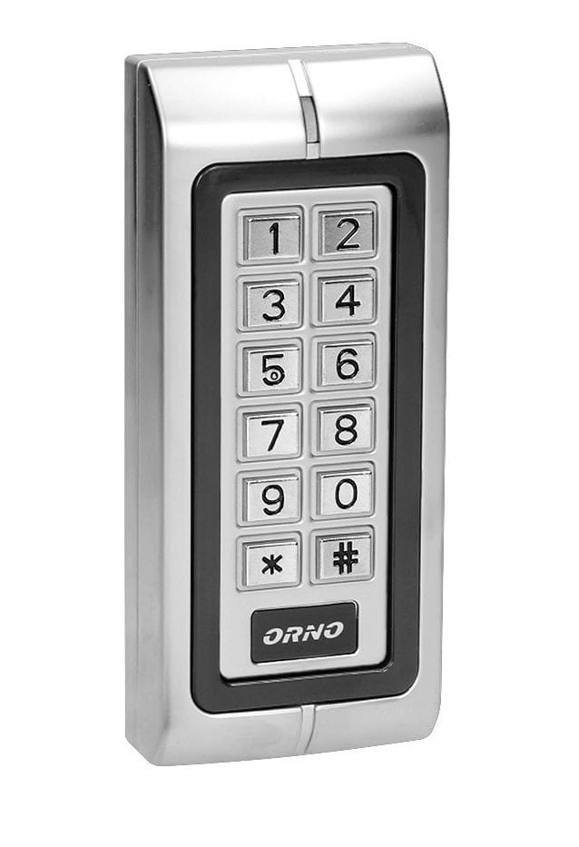 Autonomiczny zamek cyfrowy OR-ZS-815 firmy ORNO łączy w sobie funkcje cyfrowej klawiatury kontroli dostępu oraz czytnika kart i breloków zbliżeniowych. To nowoczesne urządzenie współpracuje z elektromagnetycznymi zamkami, w których stosuje się system kontroli dostępu. Może również sterować innymi urządzeniami elektrycznymi lub alarmowymi. Zamek ma 1 wyjście przekaźnikowe oraz czytnik kart i breloków zbliżeniowych. Uprawnione osoby mogą wejść do pomieszczenia lub budynku po odczytaniu karty lub po wprowadzeniu kodu dostępu. Nieulotna pamięć EPROM zapamiętuje zapisane kody i parametry w pamięci przy zaniku napięcia. Dodatkowo klawiatura zamka jest podświetlana, dlatego wprowadzanie kodów po zmroku nie stanowi problemu. Natomiast wytrzymała obudowa sprawia, że jest wyjątkowo odporny na zmienne warunki atmosferyczne. Zamek nadaje się do montażu natynkowego. Świecące diody LED sygnalizują stan pracy szyfratora.