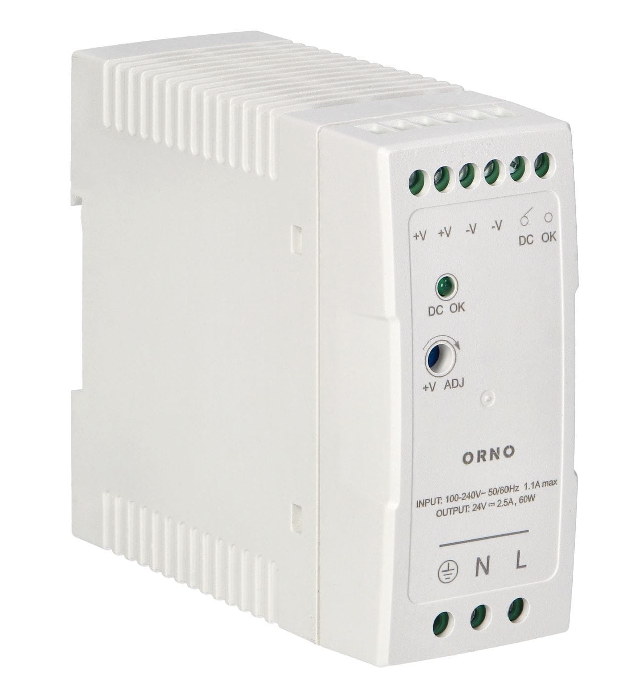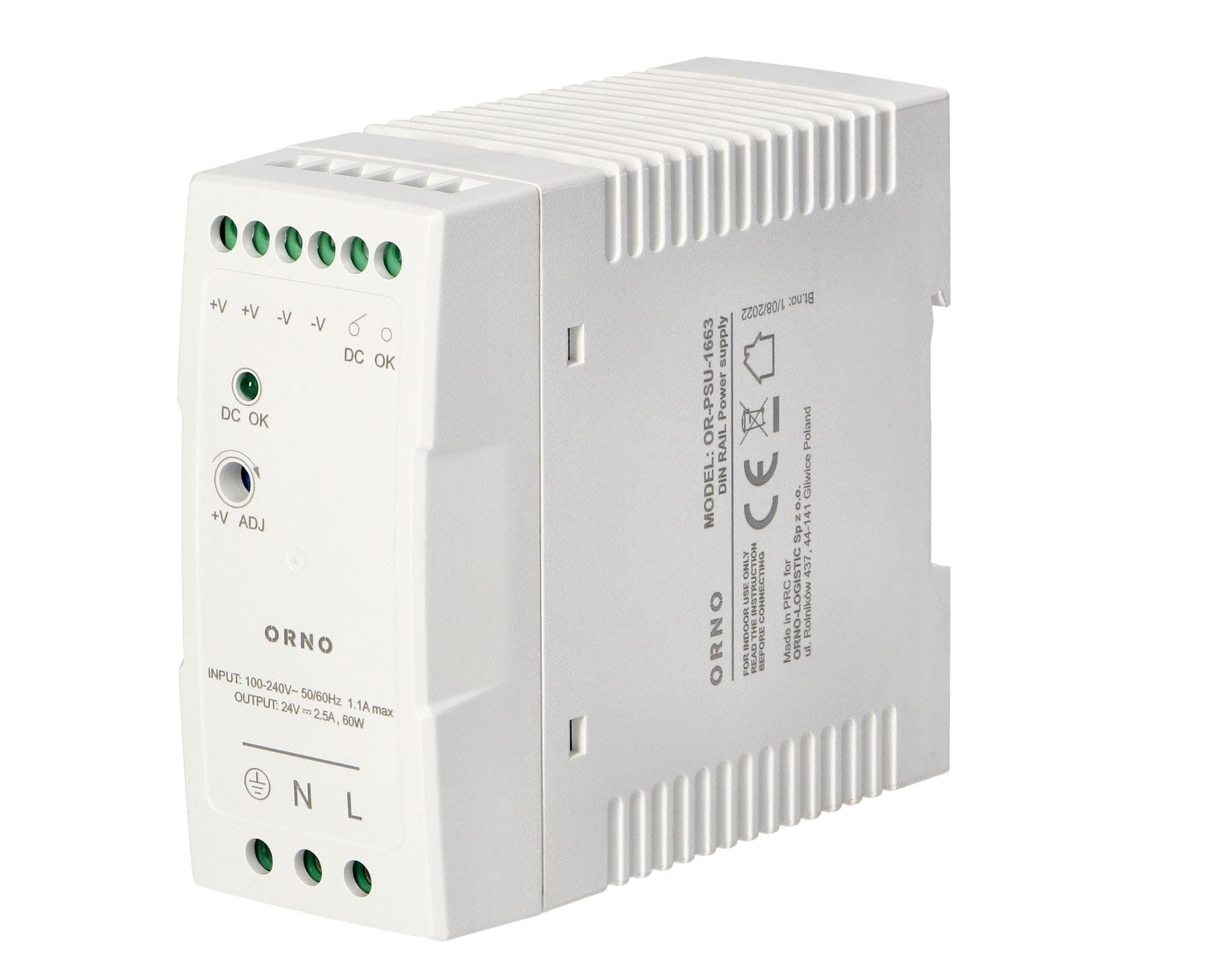 Zasilacz przemysłowy na szynę DIN 24V DC 2,5A 60W ORNO OR-PSU-1663 obudowa z tworzywa sztucznego