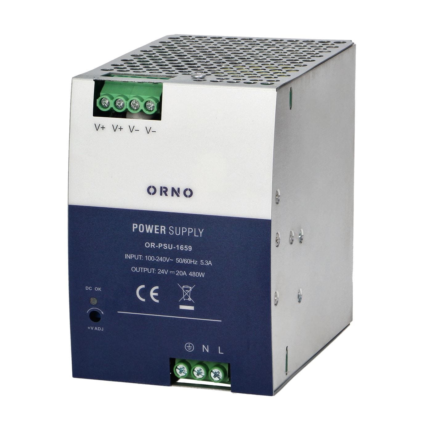 Zasilacz przemysłowy na szynę DIN 24V DC 20A 480W ORNO OR-PSU-1659 obudowa z metalu