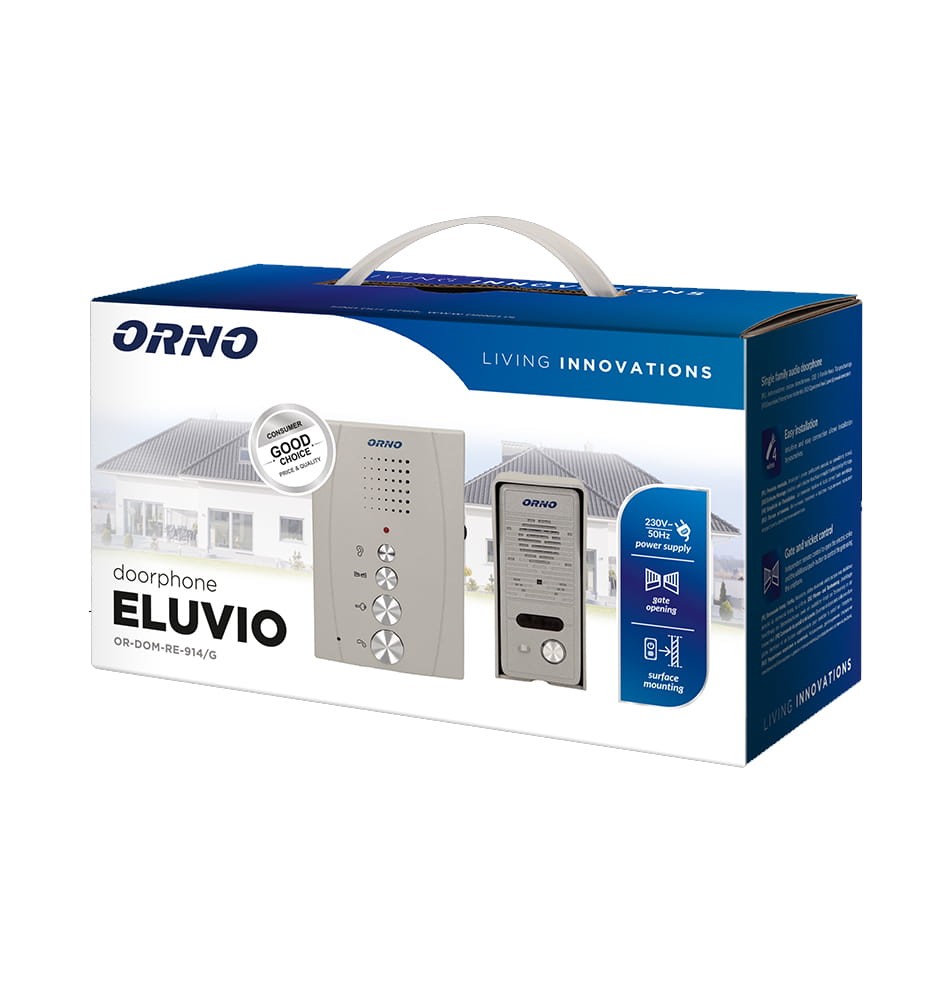 Zestaw domofonowy jednorodzinny bezsłuchawkowy ELUVIO szary ORNO OR-DOM-RE-914/G - ORNO POLSKA