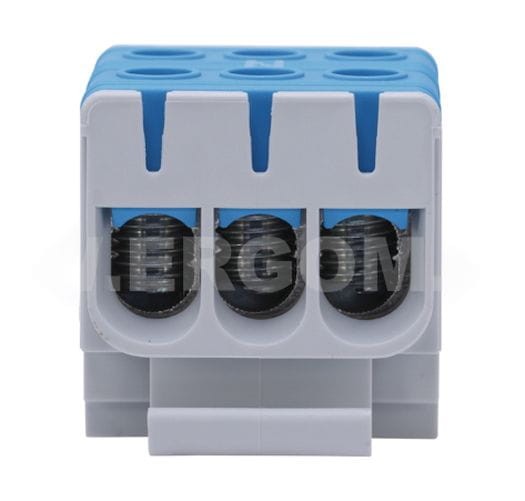 Gigant energetyczny przedsiębiorstwo PROSPERSKLEP z Sosnowca prezentuje niezbędnie akcesorium do rozdzielnic znany i niezawodny produkt firmy ERGOM - złączka instalacyjna trzytorowa ZJUN-3x50 do przewodów 50mm² 1000V - ZJUN-3x50/BL.