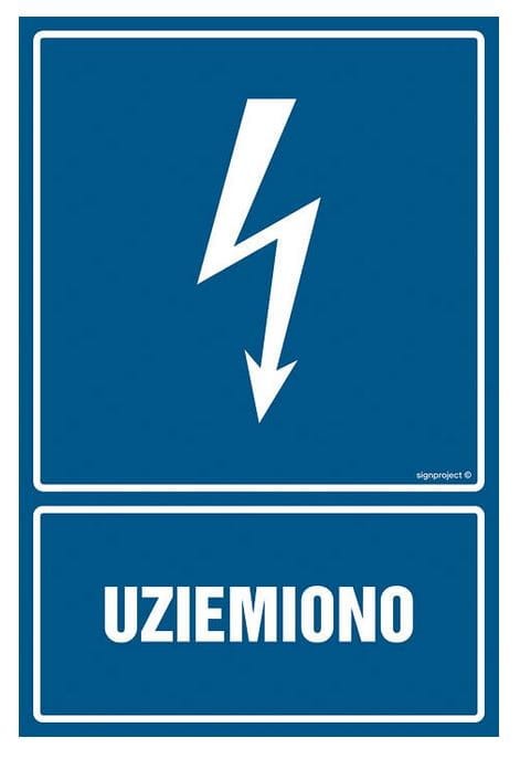 Znak na płycie PVC UZIEMIONO 297mmx210mm HUBIX K991.1306
