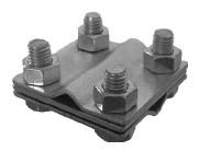 Służy do łączenia płaskownika z drutem lub drut z drutem krzyżowo, złączka czterośrubowa. Całość ocynkowana ogniowo.